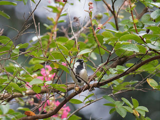 集合場所でイカルの群れが現れ、渡り途中の夏鳥も見られるかもと淡い希望を抱いておりましたが、結果は御苑の常連の鳥ばかりとなりました。ただ、常連のヒヨドリが御苑外に出張中なのか少な目で、カラス類も暑さのせいかあまり鳴き声が聞こえません。その代わり同じ常連のヤマガラやシジュウカラはそこらじゅうで出現してくれました。