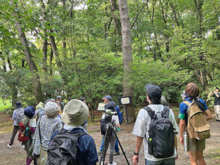 まだまだ夏真っ盛りの9月中旬の探鳥会で、雨が心配な空でも集合時間の7時半には20名ほど集まりました。