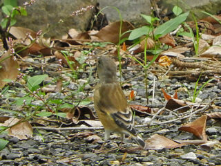 この時期は渡りの鳥にも期待していろいろ探してみますが、ヒタキ類はコサメビタキが2羽、ムシクイ類もメボソムシクイが1羽とやや低調です。でも今回は初心者の方が多く、カワラヒワ、カラ類、セキレイ類などの常連も、皆さん足を止めて熱心に観察していました。