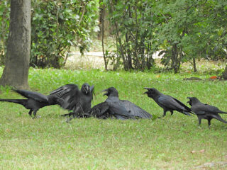 開始早々、ケンカかイジメか? カラスの仲間内で結構激しい争いが地上でおきていました。たまにあることかも知れませんが、近くで遭遇すると鳥の世界も物騒だなーと少しドキドキしてしまいます。