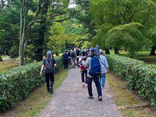 途中の水飲み場の前後で、参加者の方に探鳥会で守りたい一般的なマナーや注意事項をお話しました。