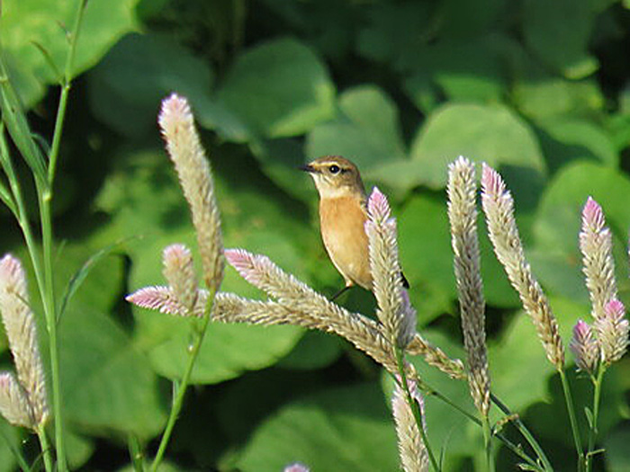 まずは今日の第一目標であったノビタキ探し。これはすぐに松尾橋の河川敷で見られました。ノビタキは1羽いるとその近くにも複数羽いることが多いため探してみると、案の定あっちでもこっちでも見つかります。