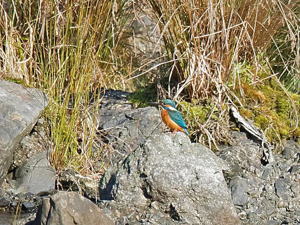 集合場所で最初にジョウビタキ雄がお迎え。近くの森にはヤマガラが忙しく動き回っています。岩倉川沿いに髙野川までいくとセキレイ3種が勢ぞろい。カワセミも姿を現しました。