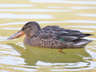 宝が池に出て見渡してもカモの数はまだ少ないです。池の東岸に沿って歩いて移動します。野鳥の森までくると池の端からは隠れて見えなかったところにカモが沢山休んでおり、ハシビロガモも3羽見つかりました。