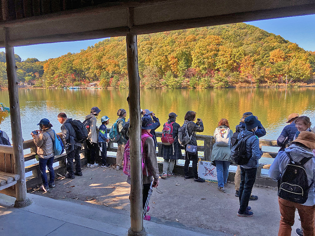 行楽日和で紅葉が進み、特にイチョウの黄葉があざやかになった公園は人出も多くなりました。