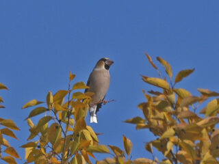 近衛邸跡に入ると1羽のシメが木の頂で長時間止まっていてくれて、十分に観察することができました。