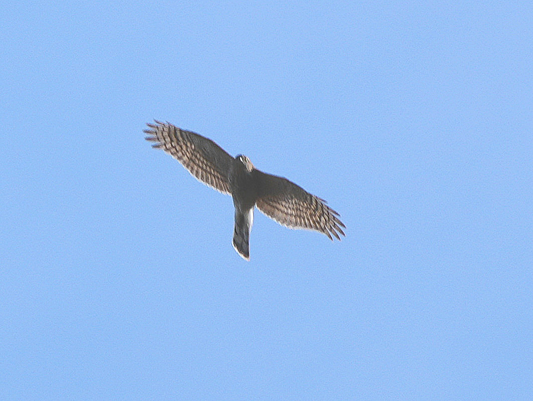 移動の途中、ハイタカがカラスに攻撃されていました。カラスが1羽のためかハイタカは余裕で相手をかわしながら飛んでいたので、わりと長時間見ることができました。