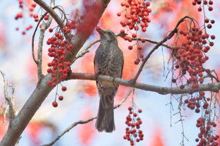 今回の探鳥会の目玉のルリビタキ、トラツグミとの出会いはありませんでしたが、担当のOさんに植物の実と野鳥の関係をお話しいただきました。