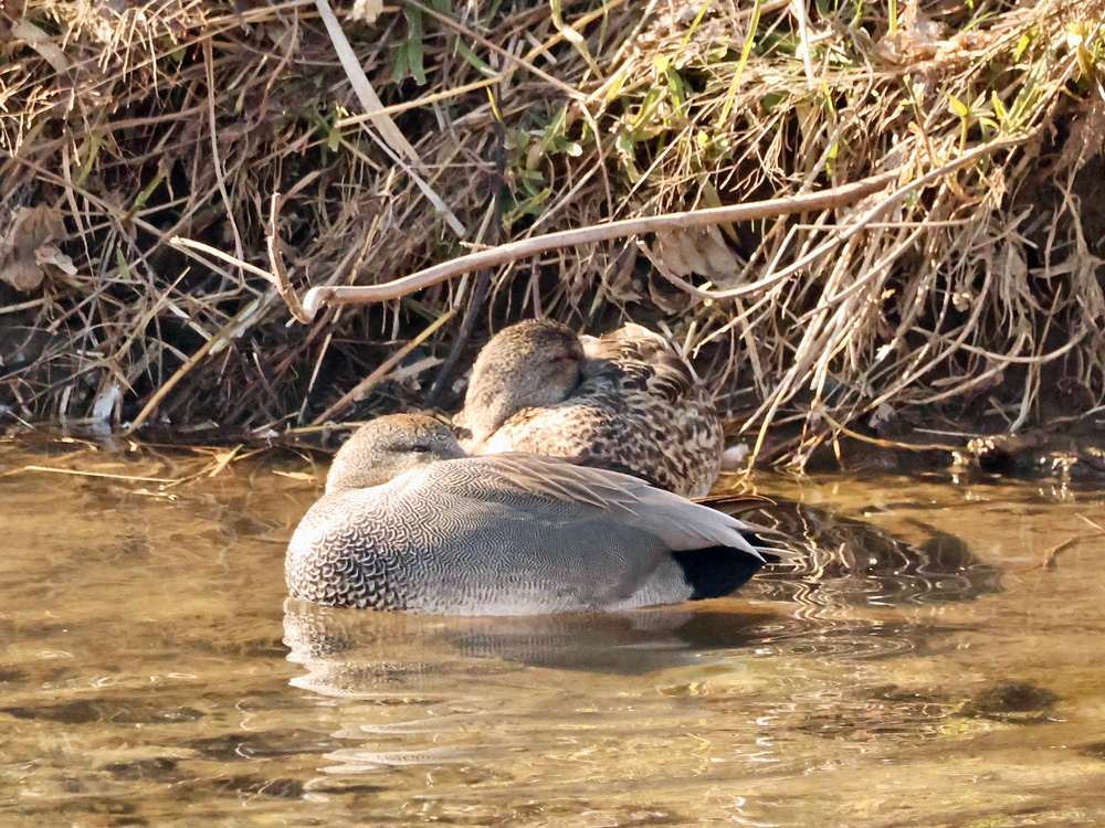 鴨川では中州のアシの深みにカイツブリが登場。シュノーケリングするカワアイサの群れ、オカヨシガモなどを観察しながら北大路橋へ。2度目の鳥合わせをして解散した。