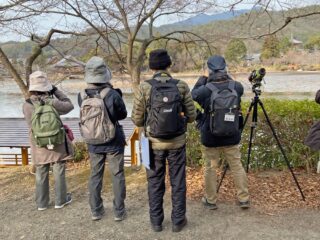 寒さがゆるみ絶好の探鳥コンディションである。寺前の庭園にツグミやビンズイが現れて楽しい探鳥会の予感がする。