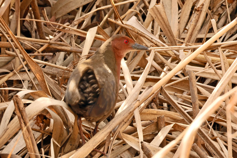 広沢の池へと向かう途中、「ノスリ」と言う声。カラスと絡みながら上空を旋回していた。干潟になった広沢池にはイカルチドリやケリ、セキレイ類が降り、盛んに採餌している。アシ原にヒクイナ、取水口にクイナも出て参加者は大満足。釣り殿で鳥合わせをして解散した。