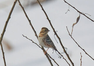 由良川の支流にかかる橋の上ではムクドリの群れ、また川の寄洲の残雪上で餌取りをしているアオジ、カシラダカ、ベニマシコの群れを観察しました。今回は高い場所から小鳥たちを見下ろして観察する機会が多かったようです。