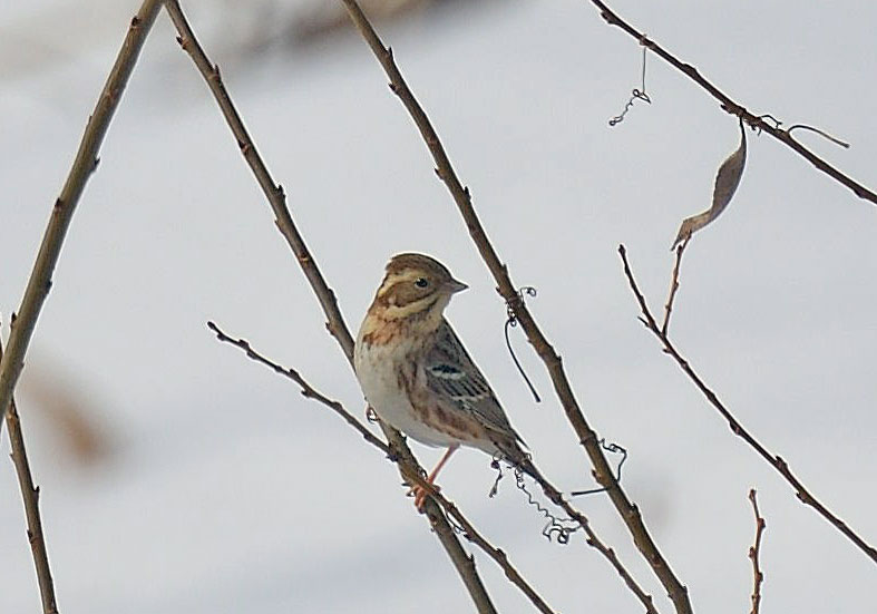 由良川を見下ろす地点では遠くにホオジロガモ数羽を確認、さらに橋の上から河川敷のかん木の間を行き来するホオジロ、カシラダカ、ベニマシコをじっくり観察しました。