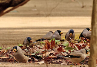 糺の森近くの木にイカルの群れが入っていたが、すぐに森の方向に飛んだ。森に入るとすぐ冬の混群に出会う。とりわけ数羽のコゲラが幹や枝を突き始め、参加者は双眼鏡で追いかけるのに余念がない。