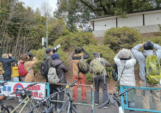 伏見桃山城公園の駐車場までくると、ようやくカラの混群が出現しました。公園の中では愛想の良いジョウビタキ3羽につきあってもらい、カワラヒワの群れが地上でエサを探しているのを見ましたが、皆さん期待のトラツグミは未だ到着していないようでした。
