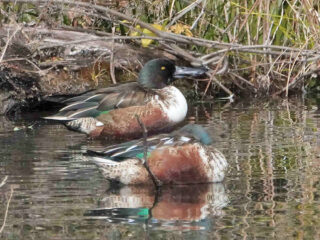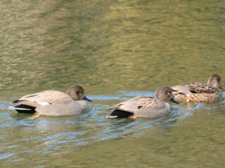 田園地帯のため池でようやくハシビロガモとオカヨシガモが出現。
