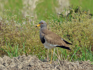 春の陽気とタゲリへの期待に誘われて、近鉄興戸駅に45名が参集しました。農耕地までの住宅地でツバメ、ムクドリ、イソヒヨドリ雌が現れ幸先よいスタート。1番目のため池ではコチドリ約10羽とセキレイ3種、背後の農地でモズやキジ。徐々に忙しくなってきました。