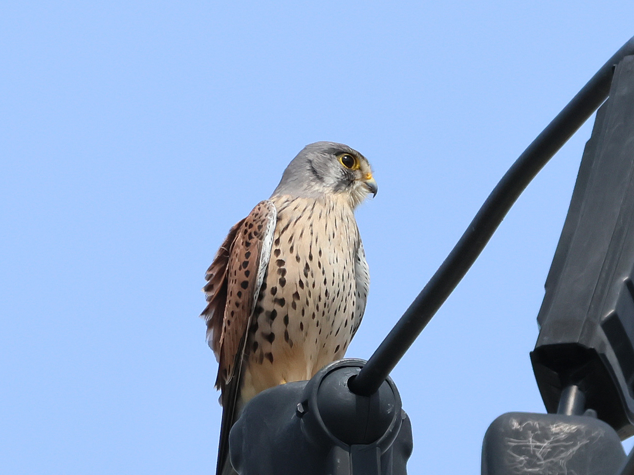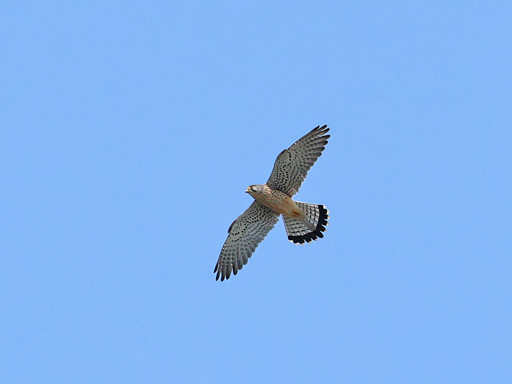 2番目のため池には、最後まで居残ったコガモ約10羽と上空を旋回する2羽のチョウゲンボウ。