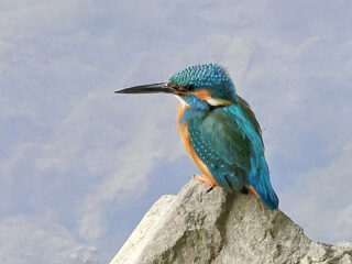 数日前の下見では鳥が不在だった下流の中州付近に、当日朝の下見ではカモ類が集まり、駅北の陵墓のサギコロニーにはアオサギが巣材運びを始めていたので、まず下流へ。キンクロハジロやオカヨシガモ、カワアイサをじっくり見ていただき、引き返す際にはカワセミも登場しました。